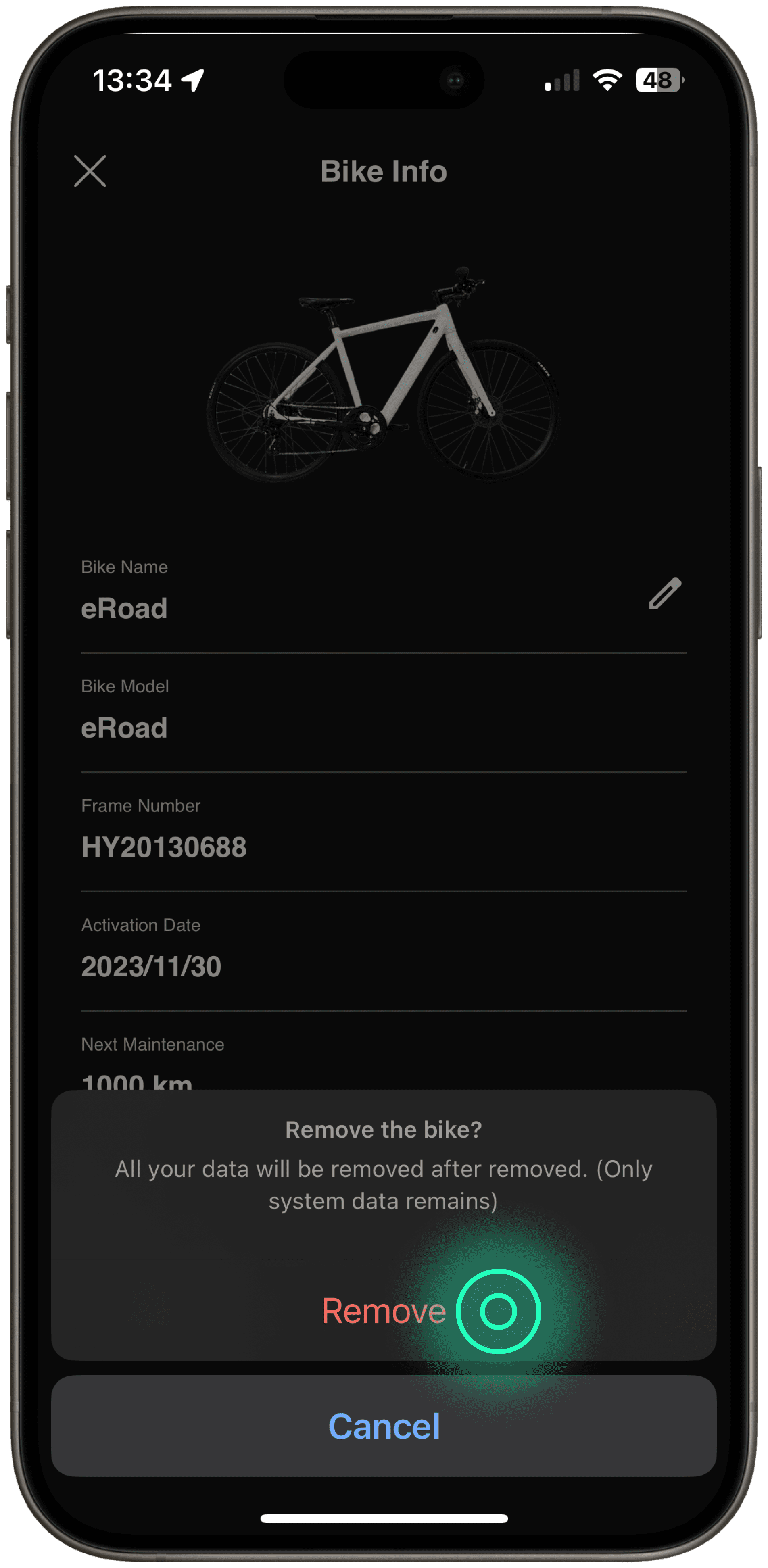 Please follow the steps below to remove the information of your current bike.