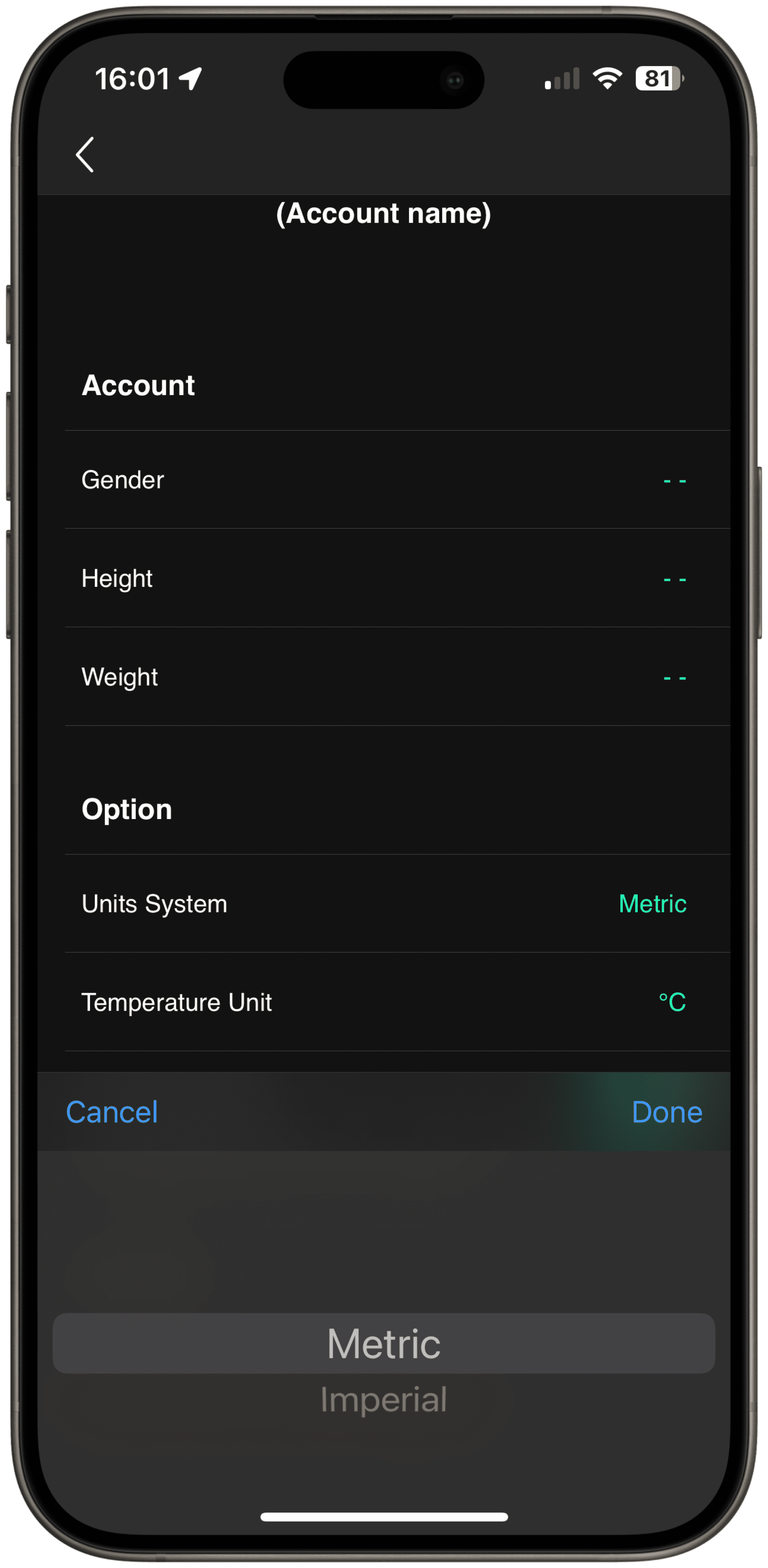 Click the “Units System” option to switch units for both HRA and your bike