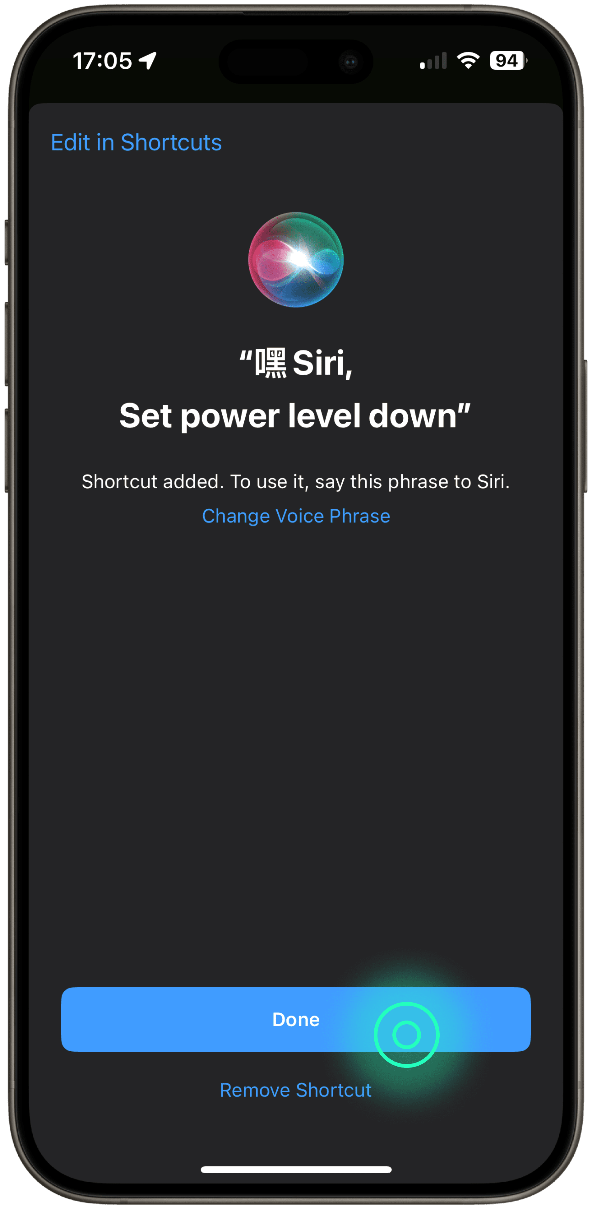 Click the “Add to Siri” button to integrate shortcuts with your iPhone