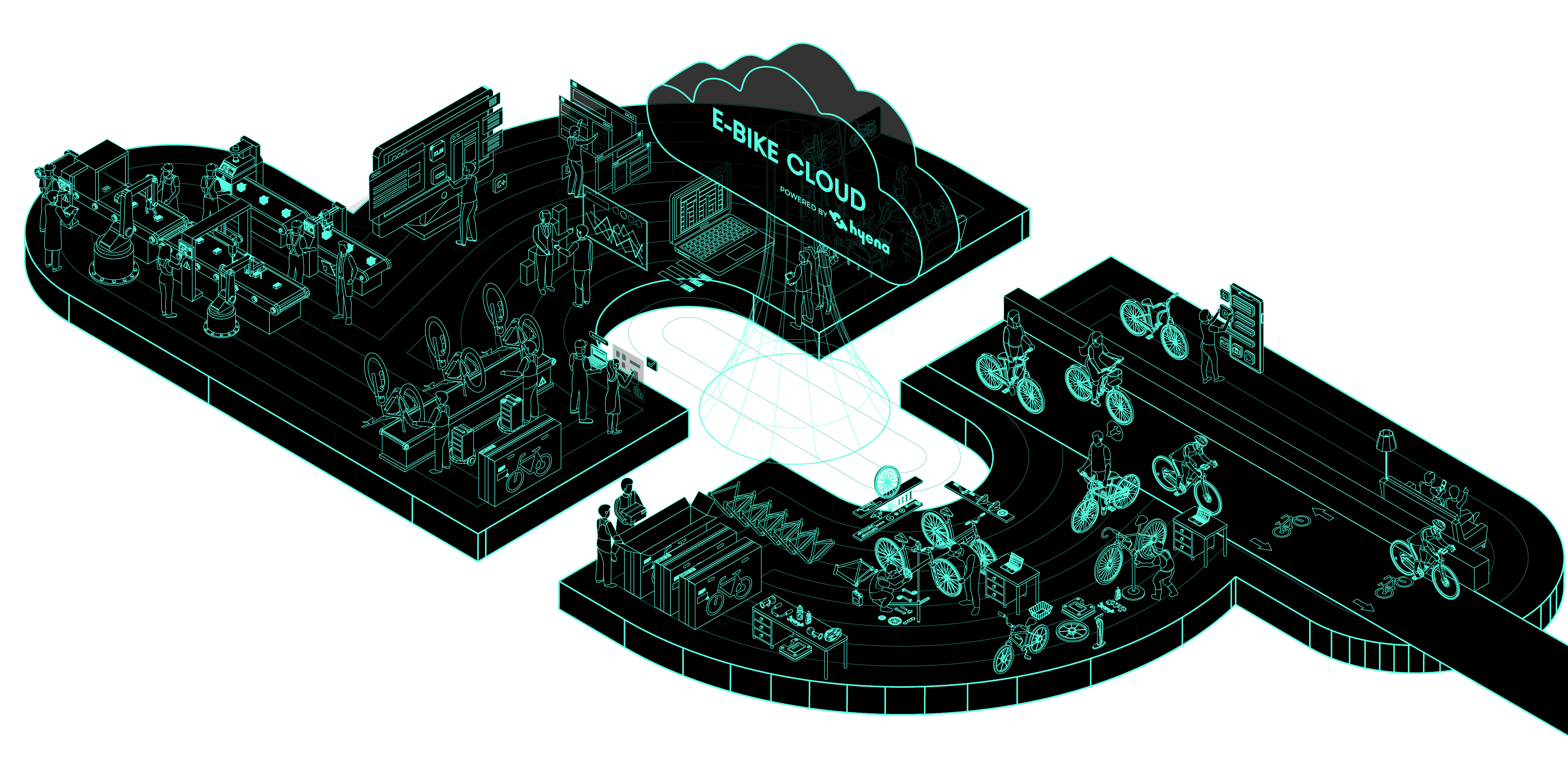 從製造到上市,電輔自行車的生產歷史、測試報告、系統資訊、自行車狀態和騎行數據達成良好的整合與可追溯性,以優化效率和維持品質,此外,我們幫助無縫地連結使用者與自行車,實現輕鬆管理。